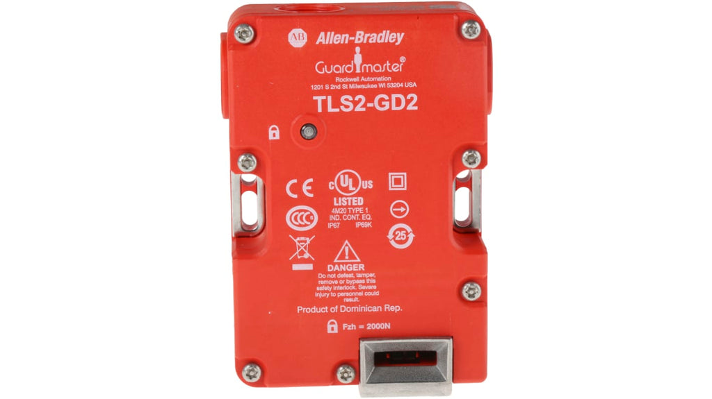 Interruttore di interblocco a solenoide Allen Bradley, modello 440G-T27127, tensione di alimentazione 24V ca/cc, grado di protezione IP67, contatti di sicurezza 2NC, contatto ausiliario 1NO, ingresso cavo M20, materiale custodia in plastica rinforzata, dimensioni 126mm x 86mm x 33mm, temperatura di esercizio da -20 a +60 gradi Celsius, certificazioni EN954-1, ISO13849-1, IEC/EN60204-1, approvazione UL.