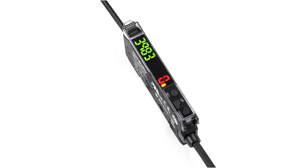 Amplificatore fibra ottica Allen-Bradley, NPN-PNP, cavo da 2 m, tensione di alimentazione 12-24 V, grado di protezione IP40, apertura ottica 2 mm, sorgente luminosa LED rosso visibile, tempo di risposta 4 ms, consumo energetico 1 W, interfaccia IO-Link, modalità ECO per riduzione consumo del 25%, funzione totalizzatore incorporata, due display ad alta visibilità per feedback operativo.
