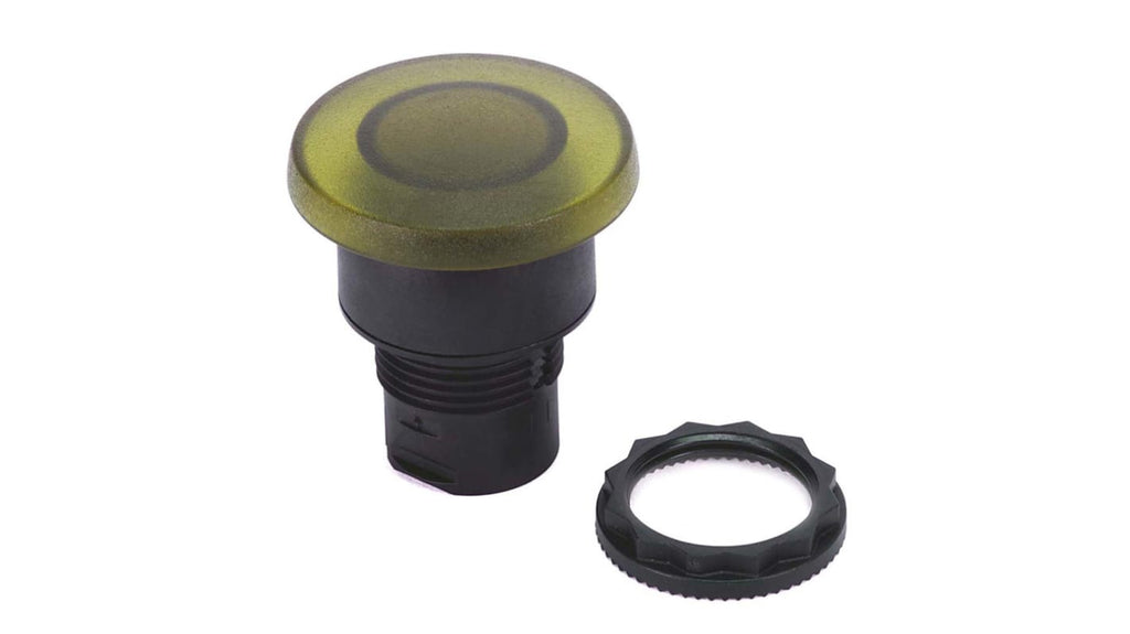 Attuatore pulsante tipo Instabile, testa rotonda, diametro 40 mm, colore giallo, materiale plastico, grado di protezione IP65, diametro foro standard 22 mm, azionamento momentaneo, blocco di contatti a monitoraggio automatico, installazione semplice, conforme a standard CE, CSA, CCC, UL508. Prodotto della serie 800F di Allen Bradley.