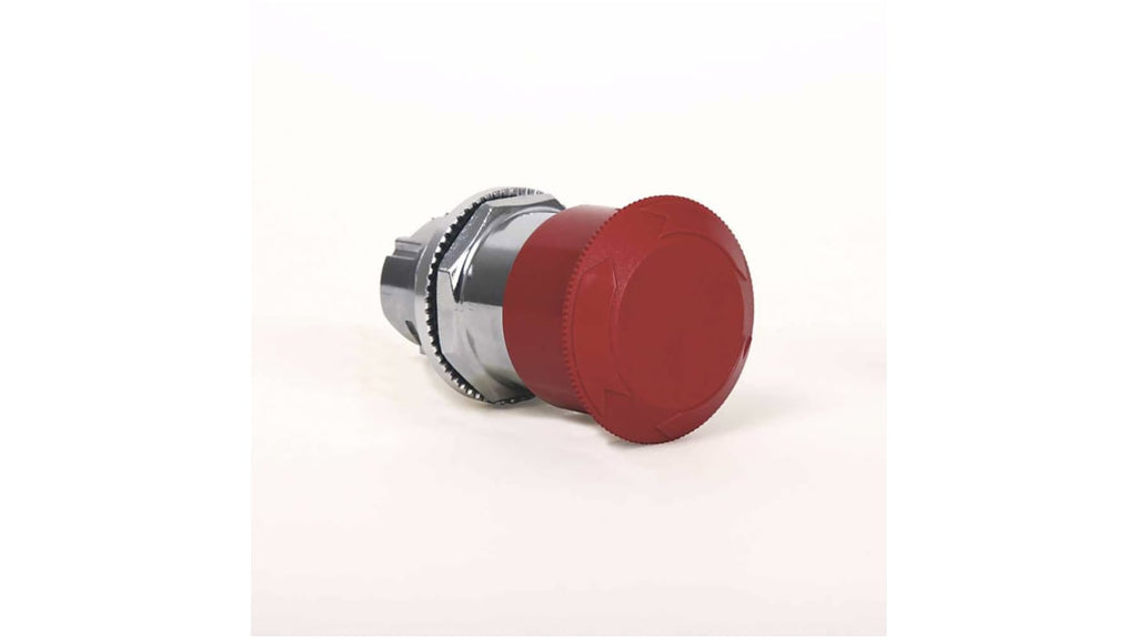 Pulsante di arresto di emergenza montaggio a pannello, diametro foro 30mm, attuazione a pulsante, rilascio a rotazione, antimanomissione, testata operatore non rimovibile, conforme agli standard EN ISO 13850 e EN 60947-5-5, serie 800T, marchio Allen Bradley.
