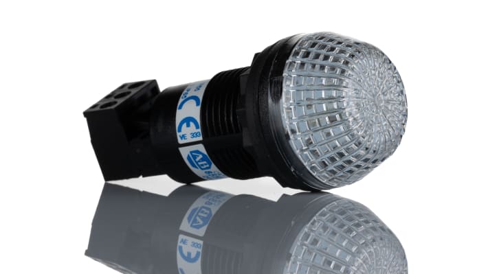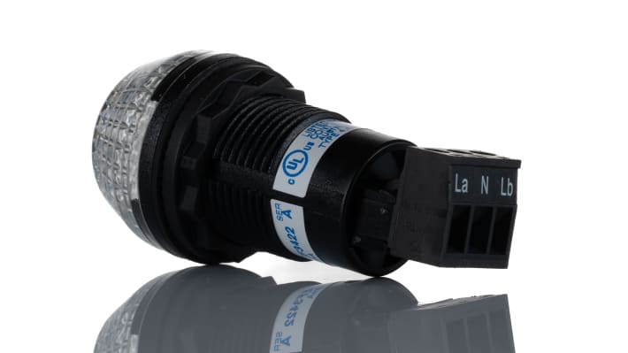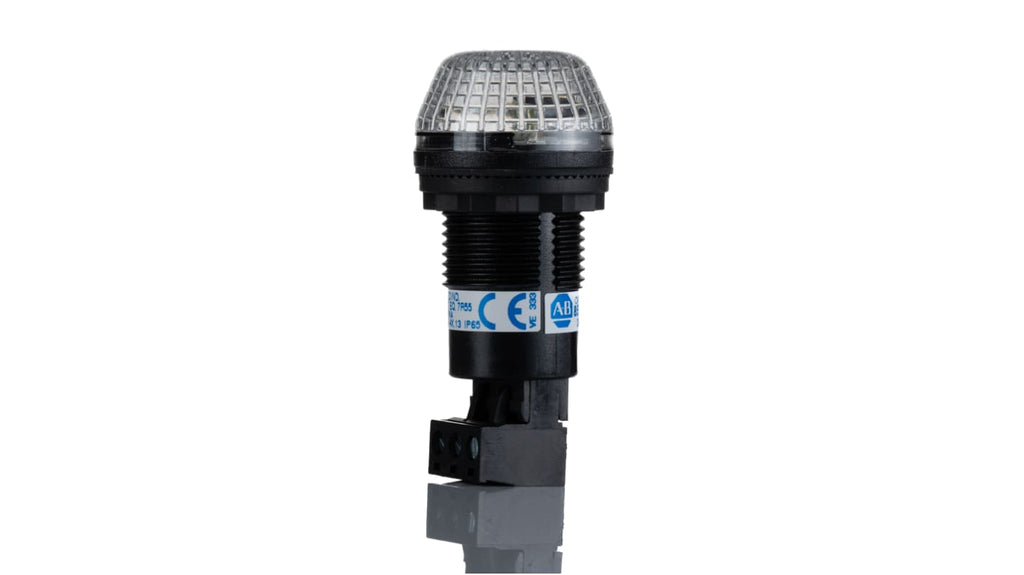 Segnalatore stroboscopico a LED, tensione 24 V ca/cc, colori verde e rosso, montaggio a pannello su foro standard da 22,5 mm, serie 855PD, grado di protezione IP65, temperatura operativa da -25 a +60 gradi, conforme a standard EN/IEC 60947-1, EN/IEC 60947-5-1, UL 508, CSA C22.2 n. 14, certificazione cULus, morsettiere a innesto, custodia nera, altezza 42 mm, diametro base 30 mm.