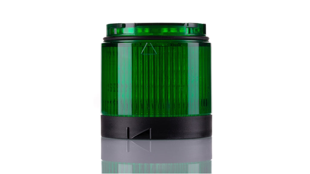 Torretta di segnalazione Allen Bradley, segnalatore luminoso multifunzione, tensione di alimentazione 24 V ca/cc, effetto luce lampeggiante, costante, stroboscopico, lente verde, lampada LED inclusa, grado di protezione IP67, temperatura operativa -30°C/+70°C, base diametro 70 mm, altezza 77 mm, struttura in policarbonato, colore custodia nero, conforme a EN 60947-5-1:2004, UL 60947-5-1, marchio CE, cULus, EMC 2014/30/EU.