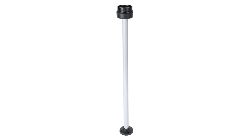 Base di montaggio per segnalatore luminoso, diametro base 70 mm, altezza 600 mm, montaggio a vite, due fori preforati per installazione su superfici piane, grado di protezione IP66 e IP67, materiale tubo in alluminio resistente alla corrosione, colore custodia nero, compatibile con segnalatori luminosi della serie 856T, standard BS EN e ANSI/ESD.