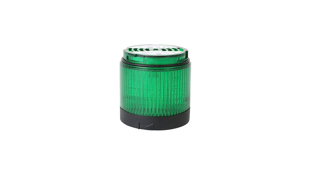 Torretta di segnalazione Allen Bradley, segnalatore luminoso LED rotante, lente verde, tensione di alimentazione 24 V ca/cc, altezza 77 mm, diametro base 70 mm, grado di protezione IP67, temperatura operativa -30 °C a +70 °C, durata lampada oltre 60.000 ore, base in policarbonato, colore custodia nero, conforme a UL 60947-5-1, c-UL-us, CSA C22.2 N. 14, RCM.