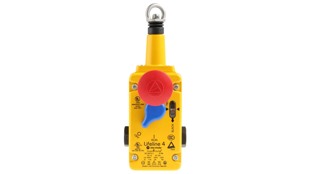 Interruttore a filo Allen Bradley Guardmaster con cavo da 75m, configurazione 2NA e 2NC, montaggio diritto. Grado di protezione IP66, custodia in lega di alluminio pressofuso, dimensioni 204 x 56 x 40mm. Tensione massima 600V c.a., temperatura operativa da -25 a +80 gradi. Compatibile con interfaccia GuardLink, conforme a UL, CE, CCC, TUV, standard EN418, EN292, EN60947-5-1, ISO13850, BS 5304.