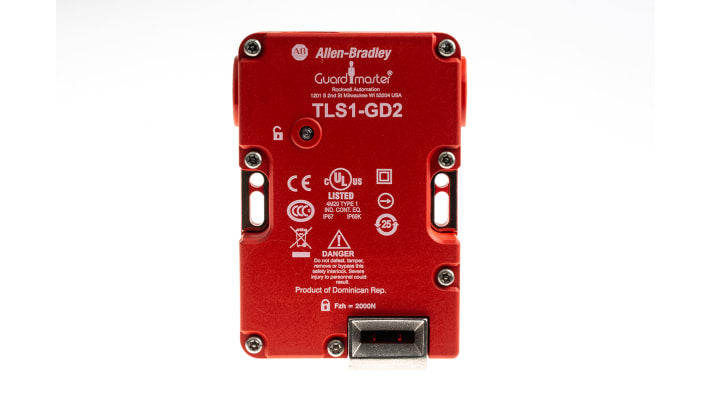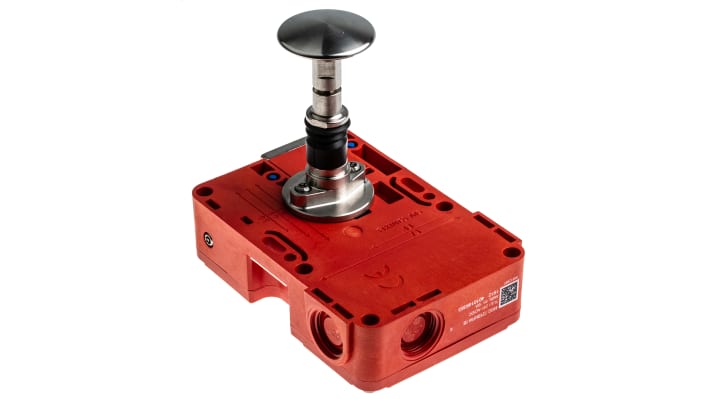 Interruttore di interblocco a solenoide, modello 440G-T21BNPM-1B, tensione 24V ca/cc, contatti di sicurezza 2NC, contatto ausiliario 1NO, grado di protezione IP66, IP67, IP69K, dimensioni 41mm x 85mm x 125mm, materiale custodia plastica, ingresso cavo M20, Power-to-Release con sblocco per evacuazione, conforme a EN954-1, ISO13849-1, IEC/EN60204-1, certificazione CE, approvazione UL e cULus.