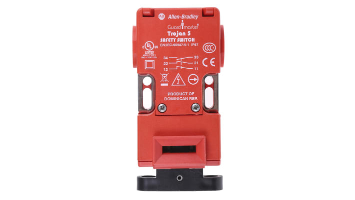 Interruttore di interblocco di sicurezza a chiave, configurazione 2NC/1NA, tensione nominale 240V AC, corrente massima 6A, grado di protezione IP67, attuatore incluso, tipo di connessione M20, materiale custodia PBT rinforzato con fibra di vetro, temperatura operativa da -20 a +80 gradi Celsius, dimensioni 32mm x 95mm x 52mm, conforme a EN 954-1, ISO 13849-1, IEC/EN 60204-1. Codice costruttore 440K-T11123.