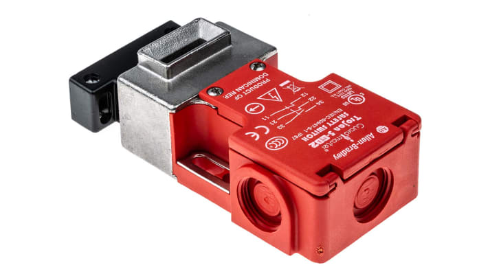Interruttore di interblocco di sicurezza, 2NC/1NA, a chiave, IP67, tensione 240V, corrente 6A, attuatore incluso, materiale custodia in PBT rinforzato con fibra di vetro, temperatura operativa da -20 a +80 gradi, dimensioni 95mm x 32mm x 52mm, tipo di connessione M20, serie Trojan 5, conforme a EN 954-1, ISO 13849-1, IEC/EN 60204-1.