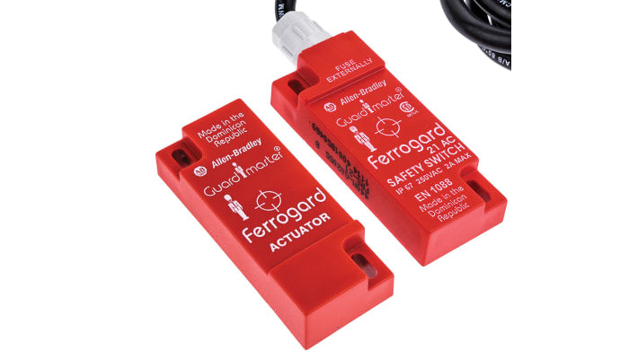 Interruttore di sicurezza senza contatto Allen Bradley Guardmaster, tensione 250V ca, contatti di sicurezza 2NC, materiale custodia ABS, cavo 4m, attuatore magnetico incluso, distanza di commutazione 12mm, protezione IP67, corrente fornita 2000mA, dimensioni 76mm x 30mm x 15mm, standard soddisfatti EN954-1, ISO13849-1, IEC/EN60204-1, NFPA79, EN1088, ISO14119, ANSI B11.19, AS4024.1.