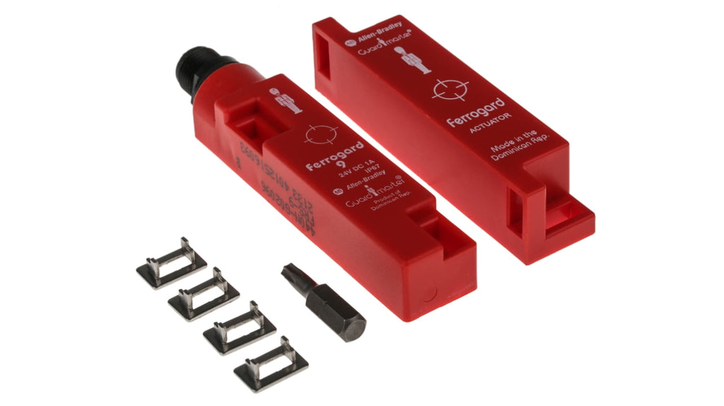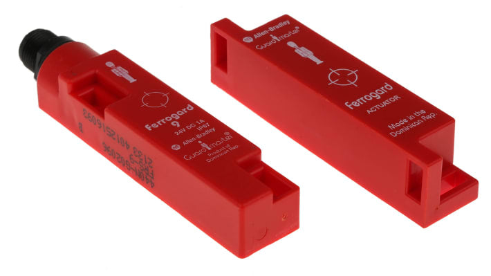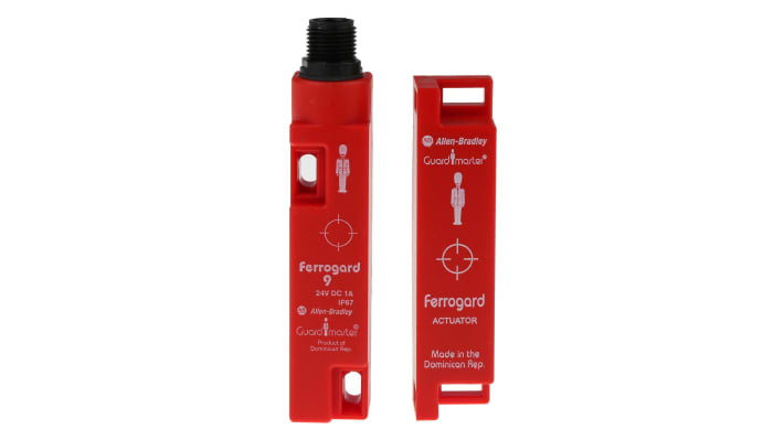 Interruttore di sicurezza senza contatto Allen Bradley Guardmaster, tensione 24V cc, contatti di sicurezza NC, microconnettore a 4 pin QD, attuatore magnetico incluso, materiale custodia plastica, protezione IP67, distanza di commutazione 12 mm, dimensioni 84 mm x 19 mm x 16 mm, categoria di sicurezza 1, conforme a EN954-1, ISO13849-1, IEC/EN60204-1, NFPA79, EN1088, ISO14119, ANSI B11.19, AS4024.1.