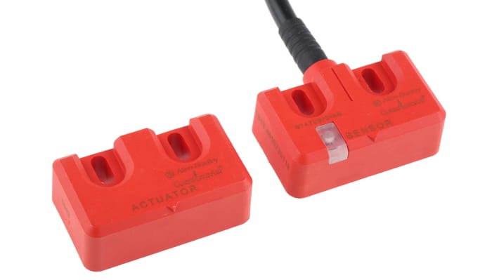 Interruttore di sicurezza senza contatto Allen Bradley Guardmaster, tensione 24V cc, contatti di sicurezza 2NC, tipo di connessione M12, attuatore magnetico incluso, distanza di commutazione 25 mm, grado di protezione IP69K, categoria di sicurezza 4, dimensioni 48mm x 29mm x 16.5mm, materiale custodia plastica, conforme a EN954-1, ISO13849-1, IEC/EN60204-1, NFPA79, EN1088, ISO14119, IEC60947-5-1, IEC/EN60947-5-3, ANSI B11.19, AS4024.1, certificazione CE, registrazione UL, certificazione TÜV.