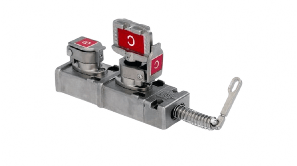 Interruttore di interblocco di sicurezza a chiave Allen Bradley Guardmaster, 2 chiavi incluse, dimensioni 119 x 48,5 x 27,4 mm, struttura in acciaio inox AISI 316 L, funzionamento ad azionamento diretto, durata 100.000 cicli meccanici, tappo antipolvere, viti antimanomissione, attuatore incluso, tipo di connessione a vite, temperatura operativa da -40 a +200 gradi, conforme a CE, UKCA, EN 14119.
