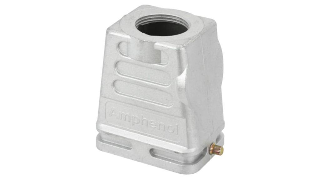 Calotta industriale Amphenol, serie C146, M20, con leva singola e ingresso dall'alto, progettata per ambienti difficili, struttura robusta, resistente all'usura e alle vibrazioni, protezione EMC eccellente, classe di protezione IP65, formato polo 6P, adatta per controllo industriale e installazione generica. Codice costruttore: C146 21R006 606 1.