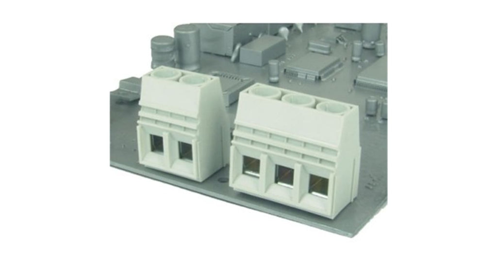 Morsettiera per circuito stampato femmina a 2 vie, 1 fila, passo 10mm, montaggio PCB. Involucro termoplastico resistente, morsetto in acciaio zincato per eccellente conduttività, vite in acciaio zincato. Perno di saldatura in rame e ottone, stagnato e nichelato. Approvazione di sicurezza UL, conformità RoHS. Codice costruttore VP0265540000G.