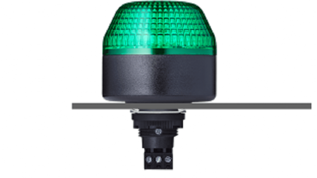 Segnalatore LED Lampeggiante, Fisso per montaggio a pannello, tensione di alimentazione 230-240 V CA, effetto luce lampeggiante e fisso, colore lente verde, tipo lampadina LED, diametro base 65 mm, grado di protezione IP65, tecnologia di connessione intuitiva, applicazioni industriali e generiche, serie IBL.