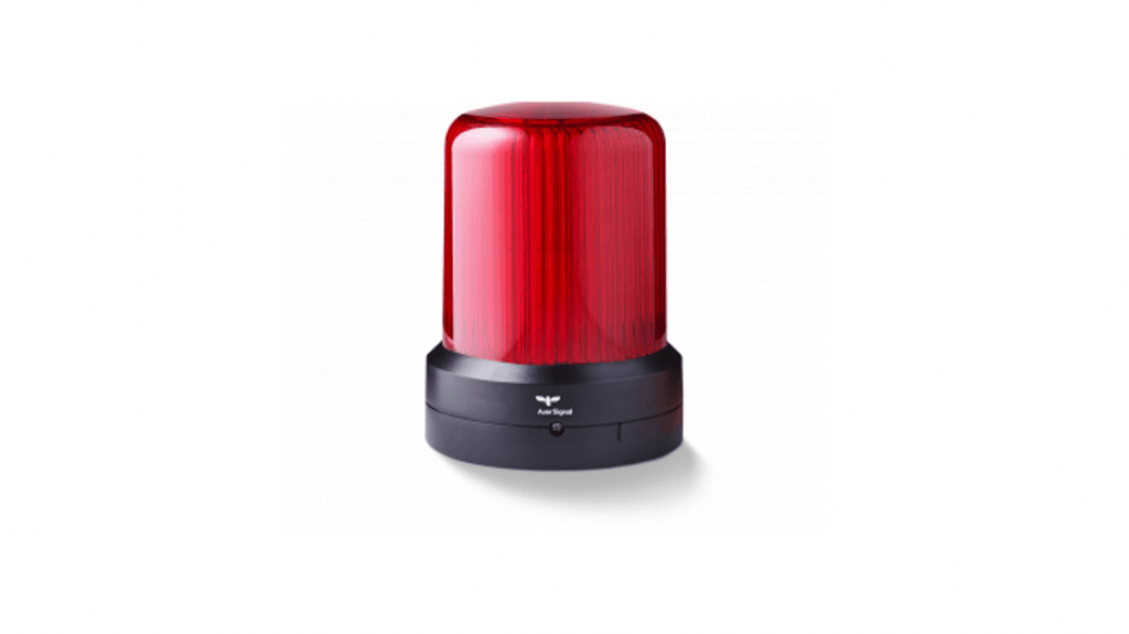 Segnalatore LED fisso di colore rosso, tensione di alimentazione 24 V c.a./c.c., tipo di lampadina LED, diametro 110 mm, montaggio su base orizzontale, grado di protezione IP66, serie RDC, guarnizione piatta inclusa, staffe in metallo per montaggio. Chiarezza della lente per migliorare l'effetto del segnale.