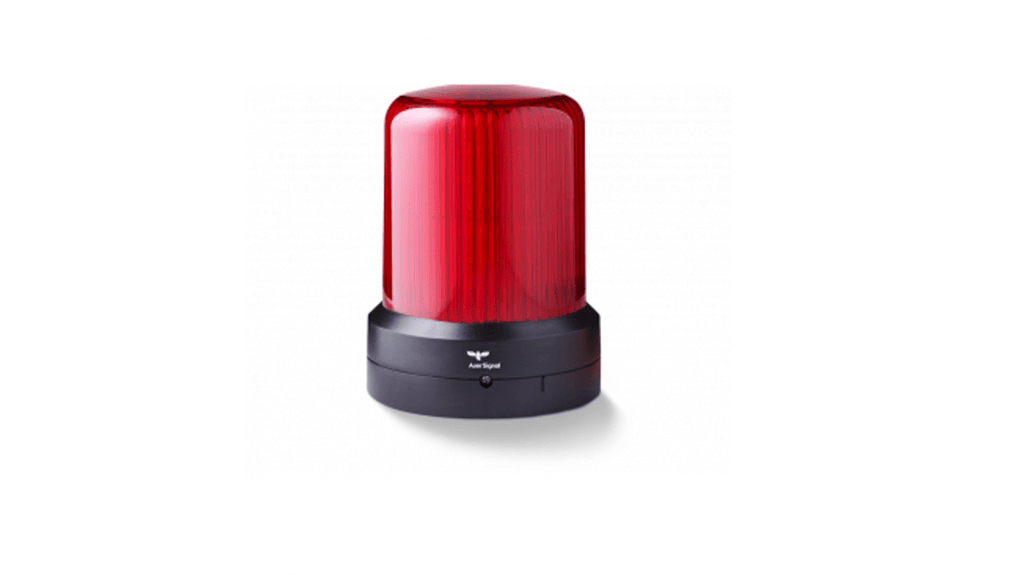 Segnalatore LED multifunzione, colore rosso, diametro 110 mm, tensione di alimentazione 24 V c.a./c.c., grado di protezione IP66, montaggio su base. Funzioni: luce fissa, luce stroboscopica, luce lampeggiante, luce rotante, luce pulsante, regolazione luminosità al 50% e 25%. Modulo multifunzione con sette modalità selezionabili esternamente e quattro gruppi di funzioni aggiuntivi tramite interruttore DIP. Modello serie RDM.