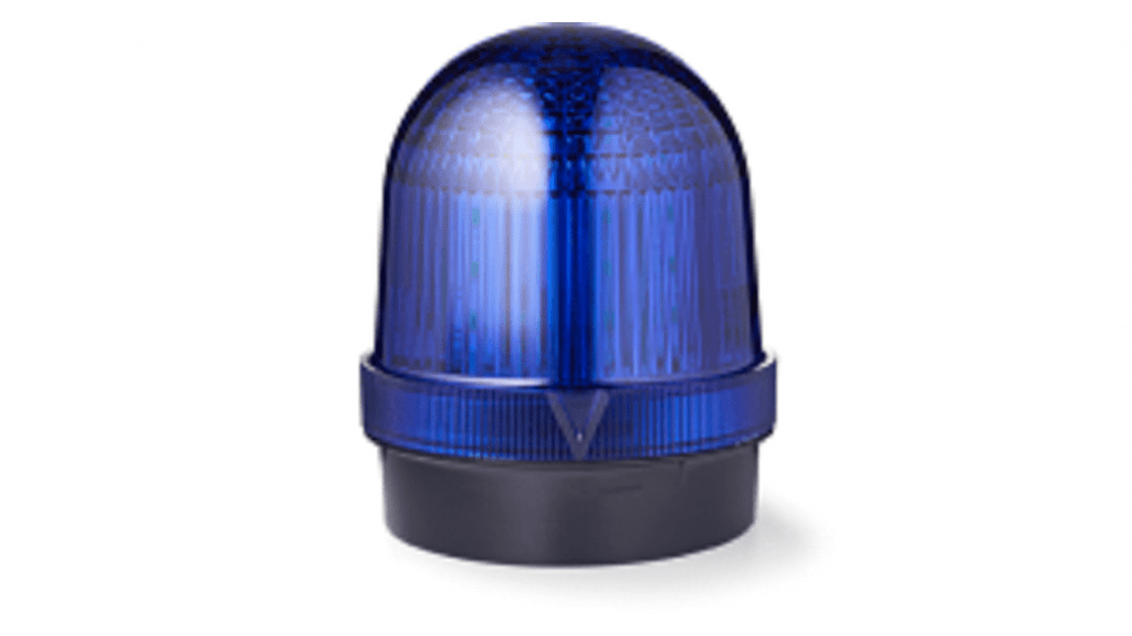 Segnalatore luminoso stroboscopico a LED, tensione di alimentazione 230-240 V CA, effetto luce multi-stroboscopico, colore lente blu, montaggio orizzontale, tubo o verticale, tipo lampadina LED, diametro base 75 mm, serie TDF, grado di protezione IP66, resistenza agli urti IK08, design modulare, tecnologia di collegamento facile, estensibile con modulo acustico TDE.