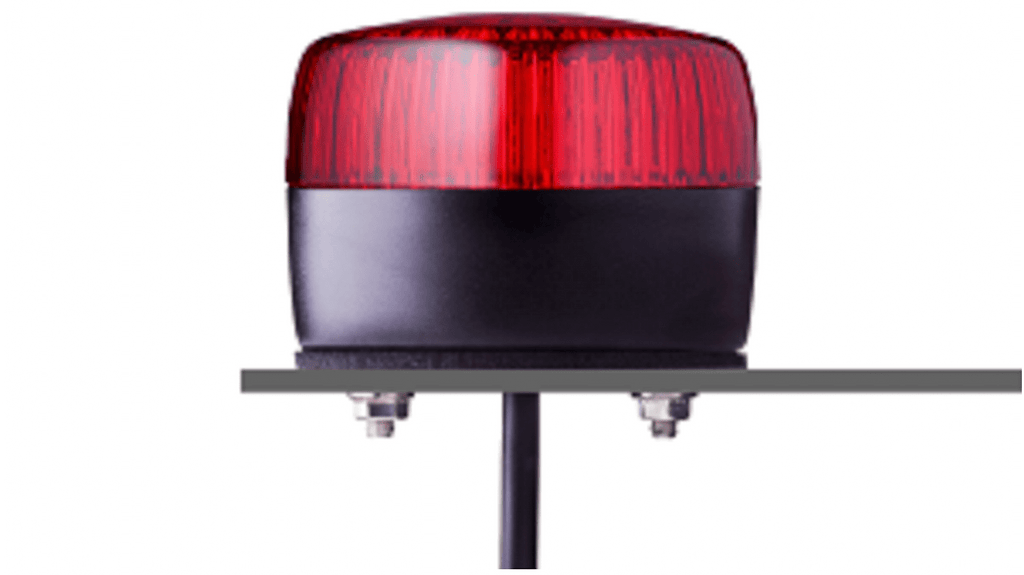 Segnalatore luminoso stroboscopico multiplo a LED, tensione di alimentazione 24 V c.a./c.c., effetto luce multi-stroboscopico, colore lente rosso, montaggio su base, sorgente luminosa a 16 LED, frequenza strobo 6x strobo/multi strobo 1 Hz, ciclo di lavoro 100%, durata sorgente luminosa oltre 50.000 ore, temperatura d'esercizio -30 °C / +60 °C, grado di protezione IP67, IP69, diametro base 75 mm, serie PFL.