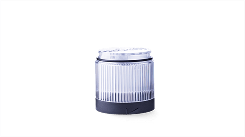Modulo luminoso rotante a LED, tipo PC7DC, tensione nominale 24 V c.a./c.c., temperatura d'esercizio -30 °C a +60 °C, lenti trasparenti, classe di protezione IP67 e IP69, resistenza agli urti IK08, diametro base 70 mm, multifunzione, effetto luce rotante, fino a 6 volte più luminoso rispetto a torrette comparabili, compatibile con torrette di segnalazione LED Modul-Perfect 70.