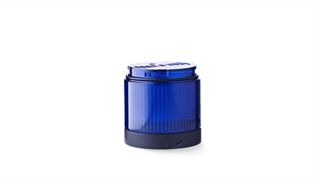 Modulo di illuminazione a LED rotante per torrette di segnalazione, tensione 24 V c.a./c.c., diametro base 70 mm, colore lente blu, classe di protezione IP67 e IP69, resistenza agli urti IK08, temperatura d'esercizio -30 °C a +60 °C, multifunzione, fino a 6 volte più luminoso rispetto a torrette comparabili, 7 posizioni per massima flessibilità.