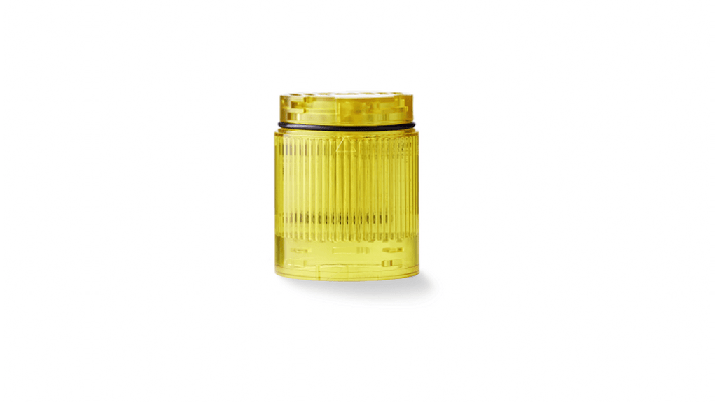 Modulo LED multifunzionale per torretta di segnalazione, serie CT5DF, tensione 24 V c.c., diametro base 50 mm, colore lente giallo, classe di protezione IP65, resistenza agli urti IK07, quattro modalità di illuminazione: fisso, lampeggiante, stroboscopico, faretti luminosi stroboscopici doppi, cambio funzione tramite interruttore DIP, temperatura d'esercizio da -30 a +60 gradi.
