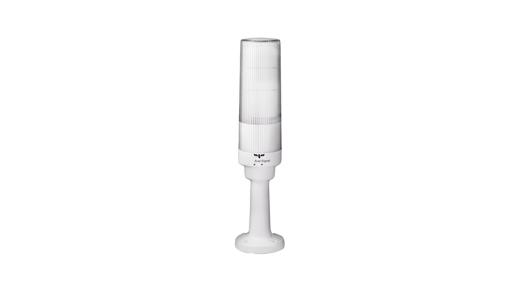 Torretta di segnalazione con LED, 3 elementi luminosi (verde, rosso, giallo), sirena elettronica, montaggio su base tubolare, tensione di alimentazione 230 V c.a., grado di protezione IP66, resistenza agli urti IK07, design monolitico con lente trasparente per ridurre interferenze luminose, eccellente distribuzione circolare della luce, facile pulizia. Codice costruttore MT60-F100-S-230V AC, marchio AUER Signal.