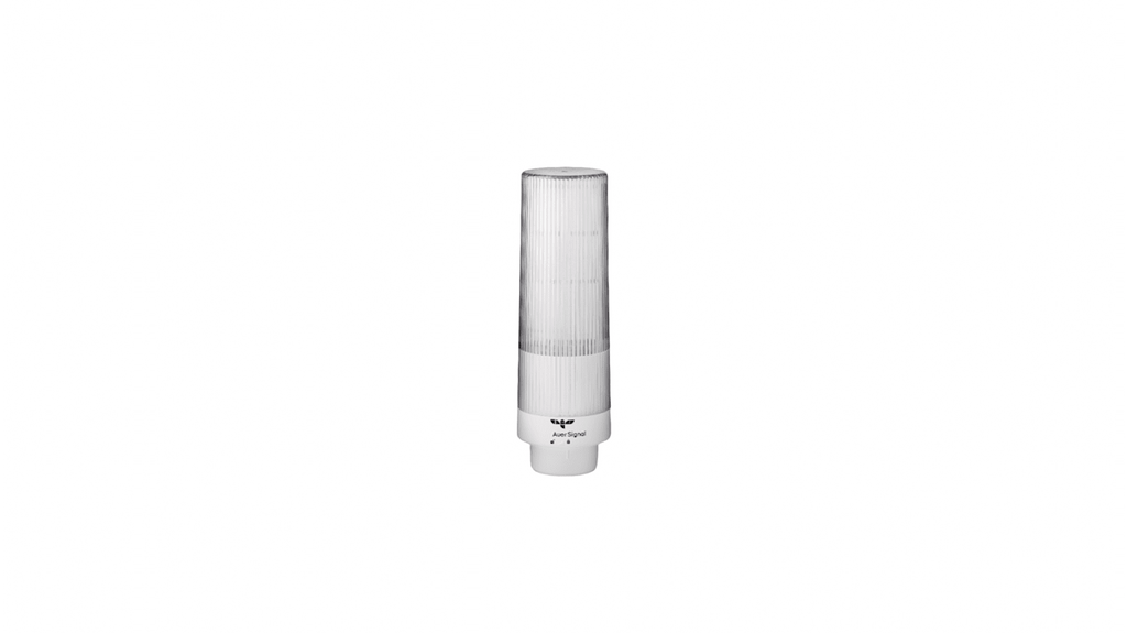 Torretta di segnalazione con 3 elementi luminosi, LED, colori verde, rosso e giallo, montaggio su tubo, tensione di alimentazione 230 V c.a., grado di protezione IP66, resistenza agli urti IK07, design monolitico a lente singola per facile pulizia, distribuzione circolare della luce per evitare punti ciechi, lente trasparente per ridurre interferenze luminose. Codice costruttore MT60-S-230V AC, marchio AUER Signal.