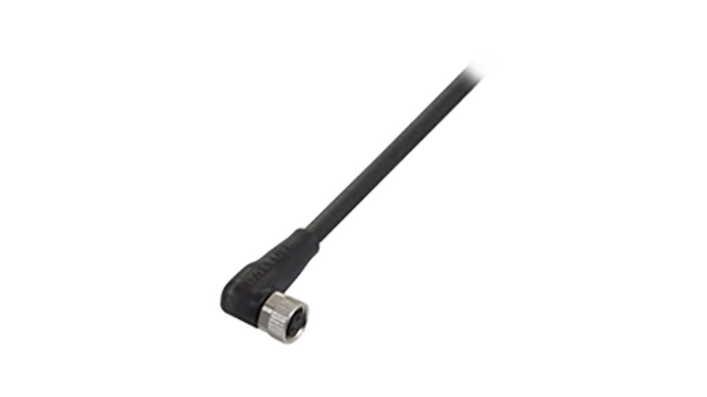 Cavo di collegamento per sensori di prossimità, 4 conduttori, M12 femmina, senza terminazione, lunghezza 2m, sezione conduttore 0,34 mm², materiale guaina PUR, tensione nominale 250 V c.a./c.c., protezione IP68, gamma operativa di temperatura -25 a 80 gradi Celsius, orientamento connettore ad angolo retto, 5 contatti. Marchio BALLUFF.
