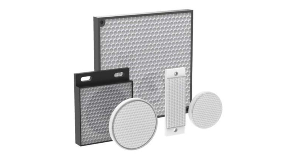 Riflettore per sensore fotoelettrico retroriflessivo, compatibile con sensore VALU-BEAM 915, forma rettangolare, codice costruttore BRT-100X50, marchio Banner. Progettato per applicazioni industriali, disponibile in diverse forme e dimensioni. Tipo accessori: riflettore per sensore.