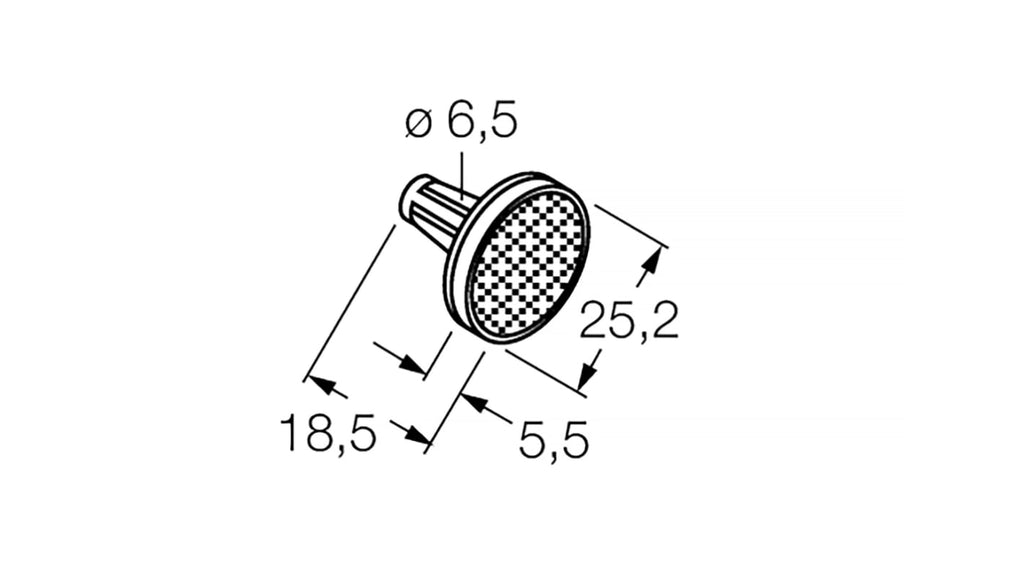 Riflettore per sensore fotoelettrico retroriflessivo, compatibile con sensore VALU-BEAM 915, forma rotonda, progettato per applicazioni industriali. Marchio Banner, codice costruttore BRT-25R. Disponibile in diverse forme e dimensioni. Tipo accessori: riflettore per sensore.