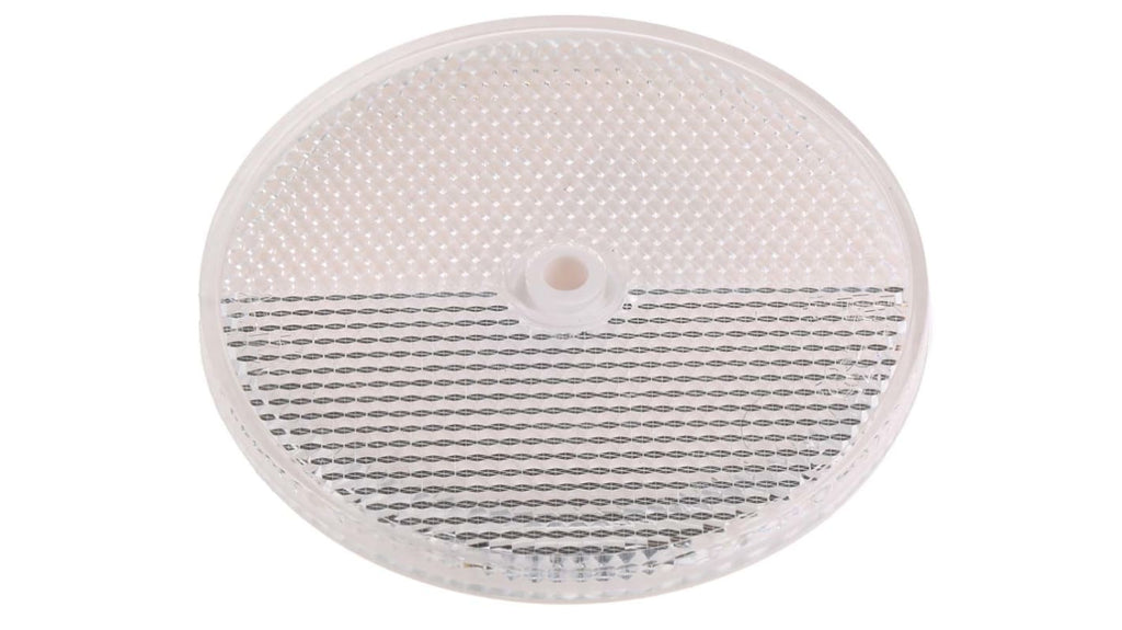 Riflettore per sensore, tipo bersaglio rotondo, diametro riflettente 81 mm, per uso con serie SM312LP, serie SM312LV, serie SM312LVAG. Struttura in materiale acrilico, spessore 9 mm, temperatura di esercizio da -20 a +65 gradi. Installazione semplice con foro di montaggio centrale pre-tagliato, riutilizzabile dopo smontaggio. Prestazioni affidabili in condizioni difficili.