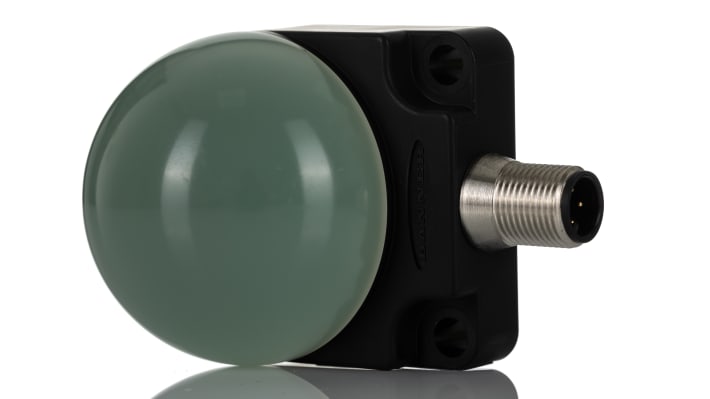 Segnalatore luminoso a LED, alimentazione 18-30 V c.c., colori verde, rosso, giallo, montaggio piatto, consumo corrente 40 mA, altezza 76 mm, diametro base 50 mm, grado di protezione IP67 e IP69K, temperatura operativa da -40 a +50 gradi Celsius, struttura in PC, conforme standard CE, immunità RFI ed EMI, lampada inclusa. Codice costruttore K50FLGRYPQ, marchio Banner.