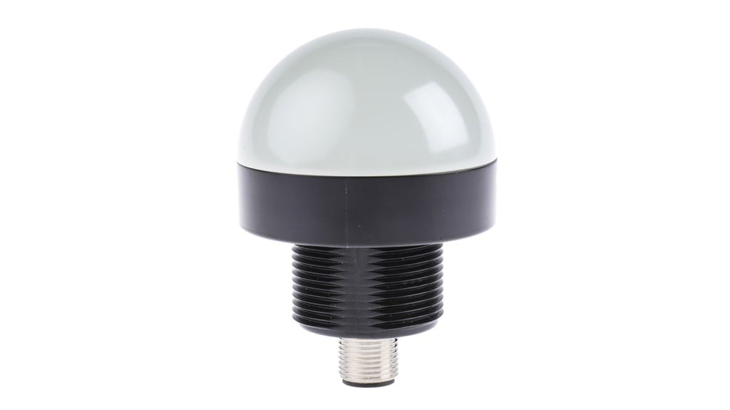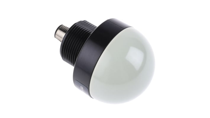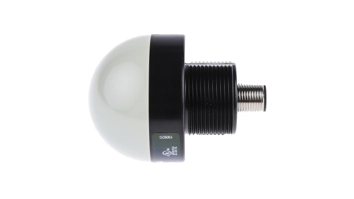 Segnalatore lampeggiante e fisso a LED, tensione di alimentazione 18-30 V c.c., consumo di corrente 50 mA, diametro base 50 mm, altezza 69 mm, colori verde, rosso, giallo, sette schemi di funzionamento, grado di protezione IP67 e IP69K, temperatura operativa da -40 a +50 gradi Celsius, materiale lente in policarbonato, montaggio su base, certificazione CE e omologazione cULus.