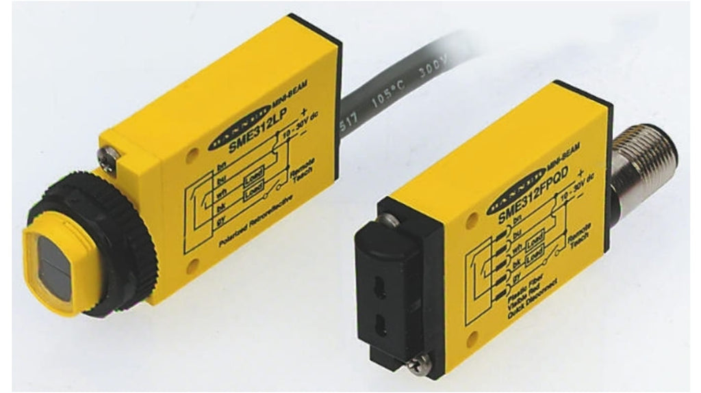 Sensore fotoelettrico a fibre ottiche, NPN-PNP, vetro, tensione di alimentazione 10-30 V c.c., grado di protezione IP67. Dimensioni 30,7 x 12,2 x 57,5 mm, materiale custodia in PET termoplastico rinforzato. Tempo di risposta 1 ms, frequenza di commutazione 500 Hz, sorgente di luce LED infrarosso. Operatività da -20 a +70 gradi Celsius, montaggio a nasello frontale o fissaggio a vite M18. Fornito con staffa di montaggio.