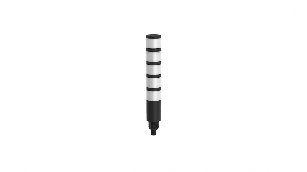 Torretta di segnalazione LED a 5 elementi, tensione di alimentazione 12-30 V dc, colori lenti blu, verde, rosso, bianco, giallo. Modello TL30, montaggio su base, senza assemblaggio richiesto. Indicatori luminosi grigi quando disattivati per ridurre falsi segnali. Prodotto robusto e facile da installare, ideale per impieghi generali. Marca Banner.