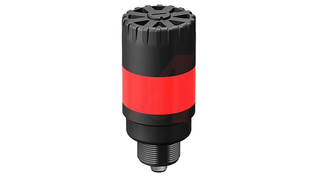 Torretta di segnalazione con emissione sonora, 1 elemento luminoso LED rosso, tensione di alimentazione 18-30 V c.c., cicalino con 94 dB a 1 metro, montaggio versatile, altezza 115.1 mm, diametro base 50 mm, consumo di corrente 100 mA dc, 35 mA (Alarm), 80 mA ac, temperatura operativa da -20 a +50 gradi Celsius, connessione a disinserimento rapido integrato, custodia nera.