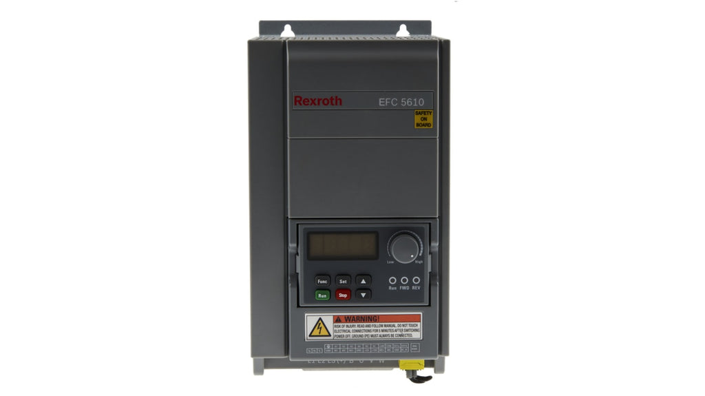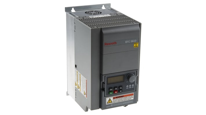 Inverter trifase Bosch Rexroth, potenza 4 kW, tensione 380 V c.a., corrente 9,7 A, frequenza di uscita 0-400 Hz. Montaggio su guida DIN, grado di protezione IP20, temperatura operativa -10 a 45 gradi Celsius. Filtro EMC integrato, controllo della velocità affidabile, tecnologia V/f, SVC e FOC. Compatibile con moduli di ingresso, uscita e fieldbus CANOpen. Certificato STO, livello SIL3. Dimensioni: 120 mm x 175 mm x 231 mm.
