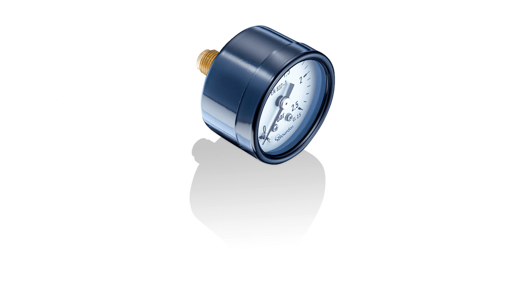 Manometro Bourdon, corpo in acciaio a secco, dimensioni Ø 40mm, attacco G 1/8, protezione IP32, classe 2.5 secondo EN 837-1, misura di pressione da -1bar a 0bar, display analogico, parti bagnate in ottone, tipo di montaggio attacco posteriore, applicazioni tecniche OEM.