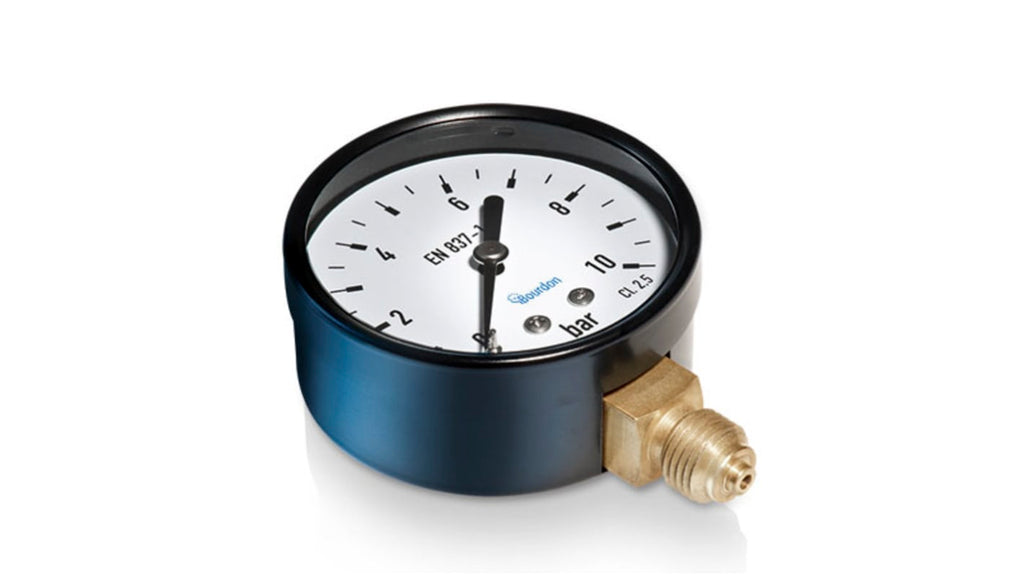 Manometro Bourdon, misura di pressione da 0bar a 2.5bar, diametro esterno 50mm, attacco radiale G 1/4, display analogico, precisione ± 2.5%, contenitore in acciaio nero dipinto, parti bagnate in ottone, temperatura operativa da -20°C a +60°C, conforme a EN 837-1, applicazioni OEM. Codice costruttore MAT2-D20.B18.
