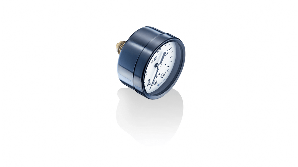 Manometro Bourdon, misura di pressione da 0bar a 1bar, attacco posteriore G 1/4, diametro esterno 53mm, display analogico, progettato per gas e liquidi non corrosivi, senza liquido di smorzamento. Codice costruttore MAT2-F20.B15.