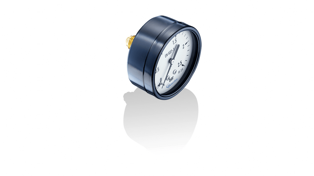 Manometro Bourdon, misura di pressione da 0bar a 6bar, attacco G 1/4, diametro esterno 63mm, corpo in acciaio a secco, grado di protezione IP32, classe 2.5 secondo EN 837-1, parti bagnate in ottone, tipo display analogico, montaggio con attacco posteriore, applicazioni tecniche OEM.