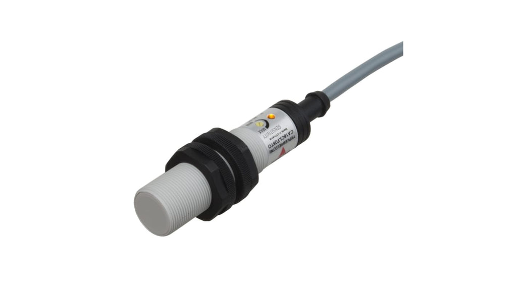 Sensore di prossimità capacitivo cilindrico. Tecnologia capacitiva, distanza di rilevamento 8 mm, filettatura M18 x 1, uscita NC, tensione di alimentazione 20-250 V ca, grado di protezione IP67. Contenitore in poliestere grigio, cavo in PVC da 2 metri o connettore maschio M12. Uscita SCR, indicazione a LED, elevata immunità al rumore, protezione contro i transienti. Modello CA18CLF08TC.
