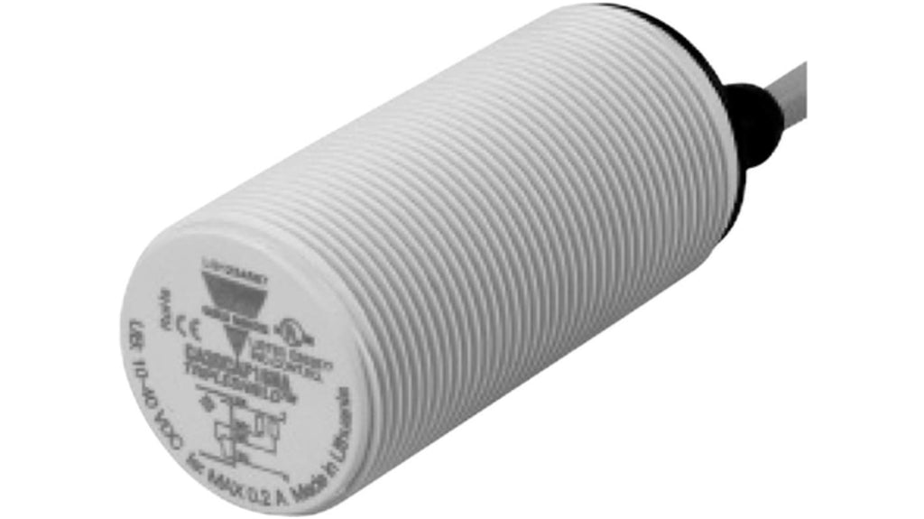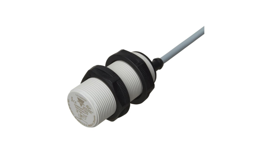 Sensore capacitivo cilindrico. Dimensione filetto M30 x 1.5, tecnologia capacitiva, uscita PNP NA e NC, gamma di rilevamento 2 a 16 mm, tensione di alimentazione 10 a 40 V c.c., corrente di uscita 200 mA, grado di protezione IP67 e IP69K, alloggiamento in poliestere termoplastico, indicazioni a LED per alimentazione e uscita, progettato per ambienti industriali difficili.