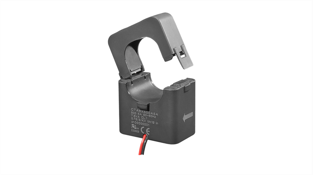Trasformatore di corrente a nucleo apribile, rapporto 100:5, serie CTA, foro di 24mm, tensione di alimentazione 600 V c.a., grado di protezione IP20, dimensioni 85.5mm x 46mm, installazione rapida, adatto per applicazioni retrofit con contatori di energia da 5 A.