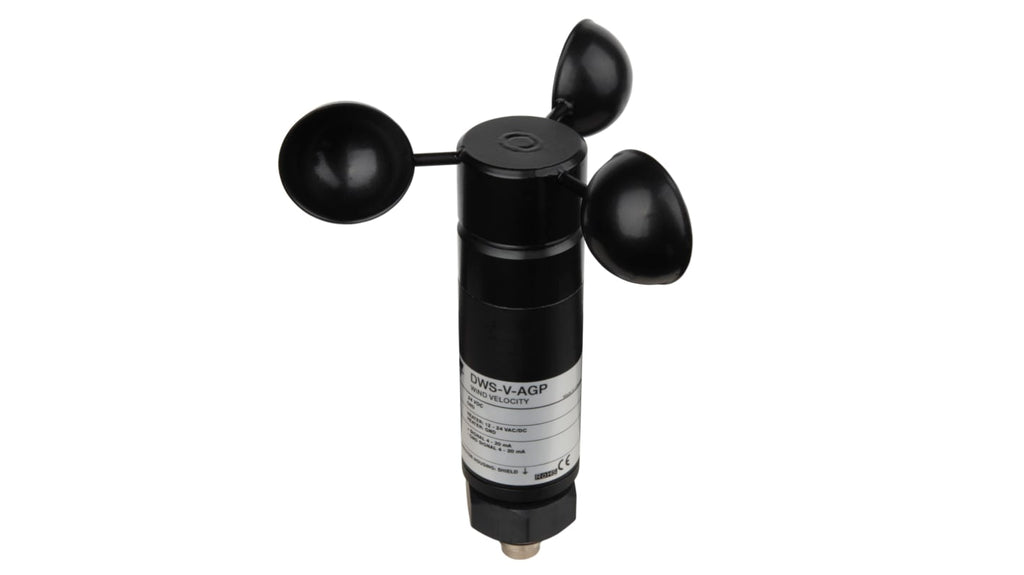 Anemometro per misurazione della velocità dell'aria, modello DWS-V-AGP, progettato per edifici, gru, case verdi, stazioni meteorologiche e turbine eoliche. Uscita 4-20 mA, rilevamento ottico-elettronico, riscaldatore incorporato, elevata protezione ESD, sigillatura contro polvere e umidità. Connessione maschio-femmina, connettore dritto.
