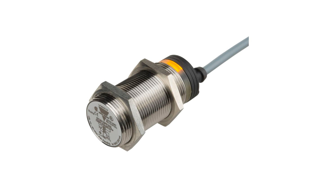 Sensore di prossimità capacitivo cilindrico. Uscita SCR, distanza di rilevamento 16 mm, montaggio a filo. Dimensione filetto M30 x 1.5, tensione di alimentazione 20-250 V ca. Grado di protezione IP67, contenitore in acciaio inox, cavo in PVC da 2 metri. Indicazione a LED, elevata immunità al rumore, protezione contro i transienti. Marchio Carlo Gavazzi, codice costruttore EC3016TBASL.