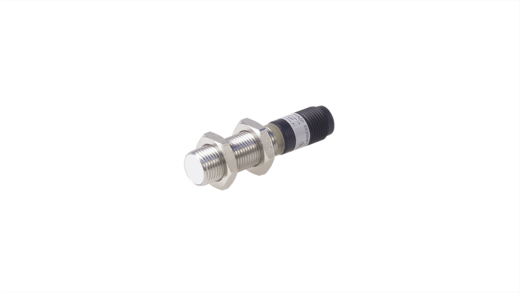 Sensore di prossimità induttivo cilindrico, tecnologia induttiva, corpo in acciaio inox M12 x 1, uscita PNP, gamma di rilevamento 2 mm, tensione di alimentazione 10-40 V c.c., frequenza di commutazione massima 800 Hz, ritardo di accensione inferiore a 10 millisecondi, grado di protezione IP67, connettore maschio M12, marcatura CE, omologazioni UL e CSA, protezione contro cortocircuiti e inversione di polarità, indicazione LED per uscita ON.