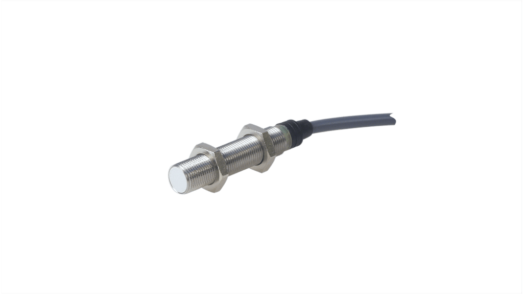 Sensore di prossimità induttivo cilindrico. Marchio Carlo Gavazzi, codice EI1202TBOSL. Tensione di alimentazione 20-250 V ca, rilevamento 2 mm, tipo uscita SCR. Contenitore in acciaio inox, grado di protezione IP67, frequenza di funzionamento 25 Hz, ritardo all'accensione inferiore a 100 millisecondi. Anello a LED giallo per indicazione stato uscita. Marcatura CE, omologazioni UL e CSA, protezione contro i transienti e sovratensioni.
