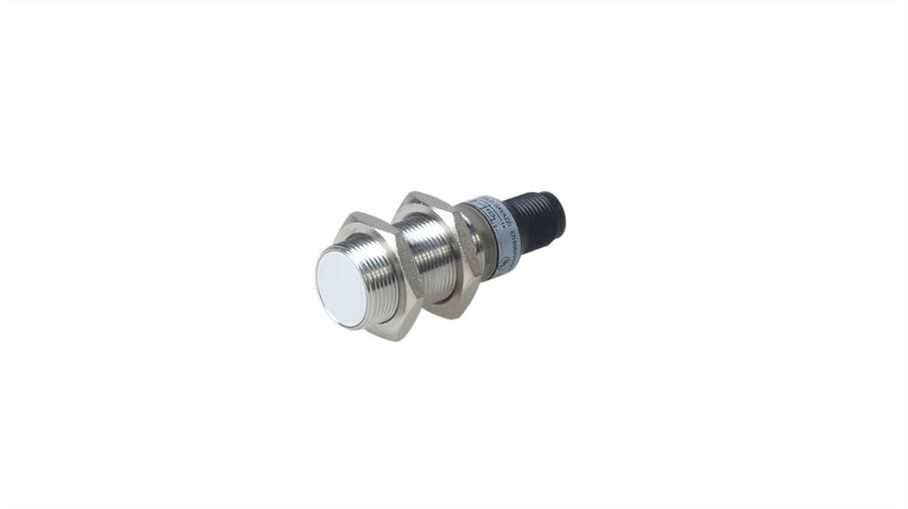 Sensore di prossimità induttivo cilindrico. Contenitore in acciaio inox M18 x 1, uscita NPN, rilevamento a 5 mm. Tensione di alimentazione 10-40 V c.c., frequenza di commutazione massima 500 Hz, ritardo di accensione inferiore a 10 millisecondi. Grado di protezione IP67, marcatura CE, omologazioni UL e CSA, protezione contro cortocircuiti e inversione di polarità, indicazione LED per uscita ON. Connettore maschio M12.